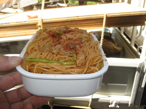 本日の昼食です! 愛妻弁当のミートスパゲッテイー(特大)