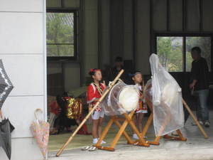 息子、(かいり)は、太鼓ぶち雨の中頑張りました。