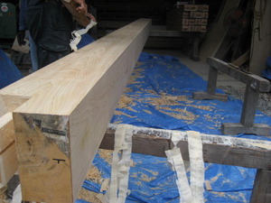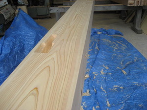 T様邸の大黒柱! 手作業で、仕上げて行きます。